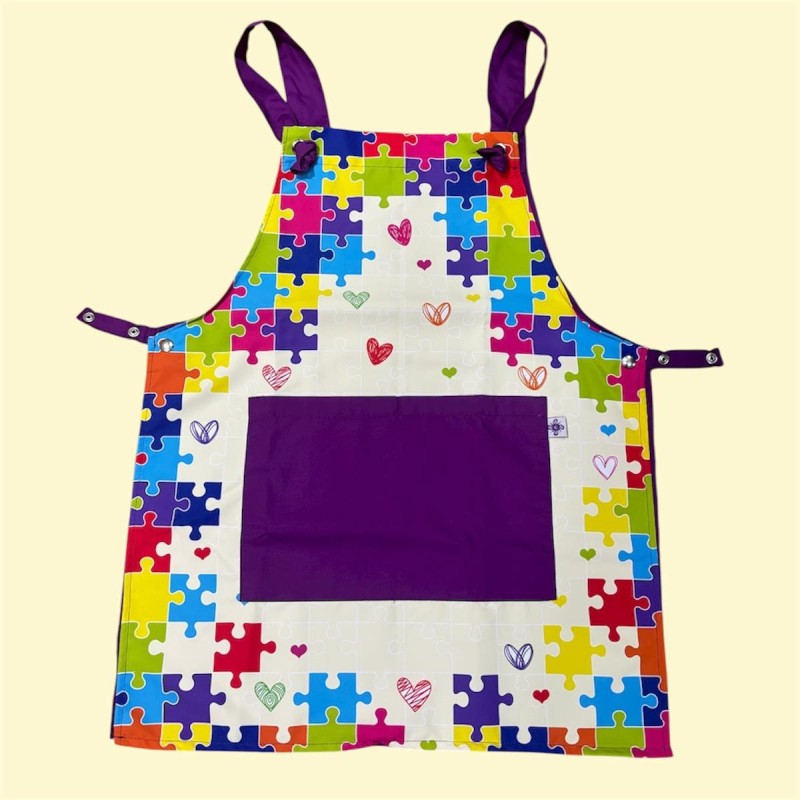 ✔️ Devant en microfibre sublimée avec motifs en lien avec l’autisme (puzzle coloré)