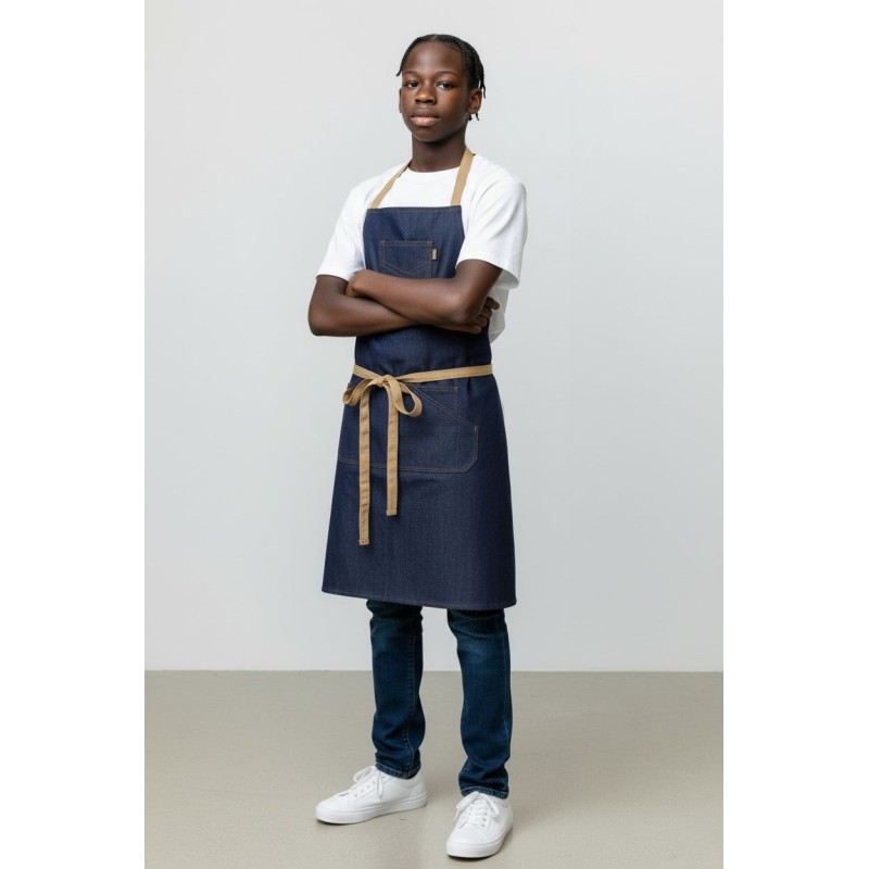 Short French Denim Apron with Canvas Details – Contemporary Look