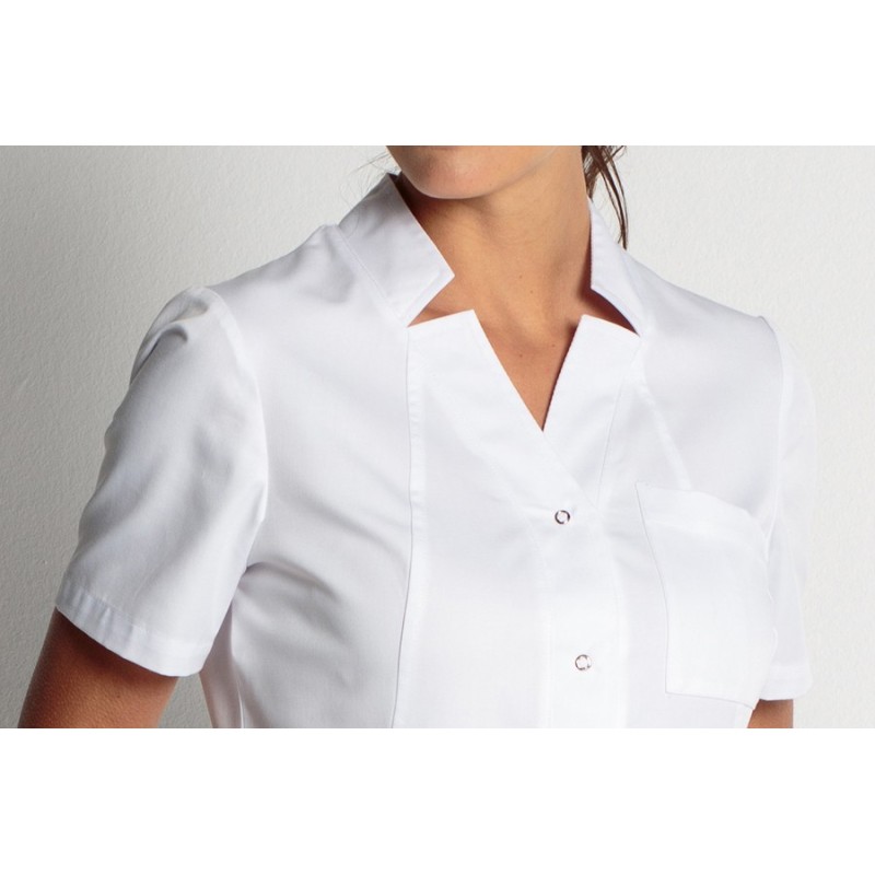 Fitted Women’s White Smock – Snap Closure & Neckline Details