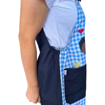 ✔️ Detalhes úteis: dois bolsos em azul escuro para maior praticidade no trabalho.